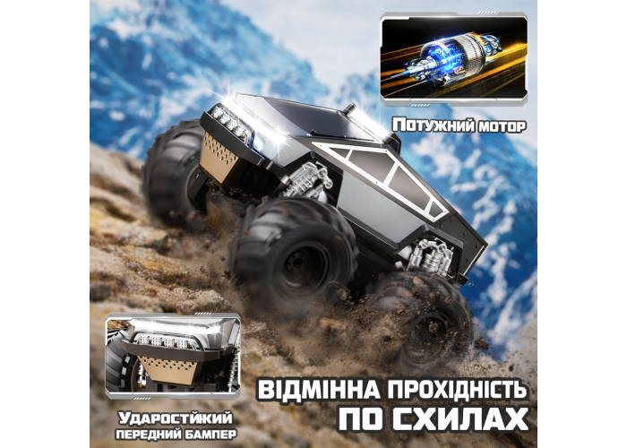 Завдяки конструкції з чотирма вседоріжжними колесами машина виконує видовищні трюки — обертання на 360°, перевороти, бічний рух і швидкі розвороти. Керування ведеться за частотою 2.4 GHz: без перешкод, з високою чутливістю й максимальною дальністю. Іграшка створена для активної гри на вулиці й ідеально підходить для дітей та дорослих, які люблять динаміку та незвичайні ґаджети.