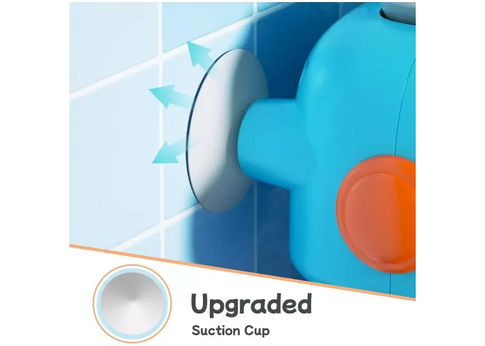 Легке кріплення: Іграшка оснащена надійними присосками, які міцно тримаються на стінці ванни або кафелі.