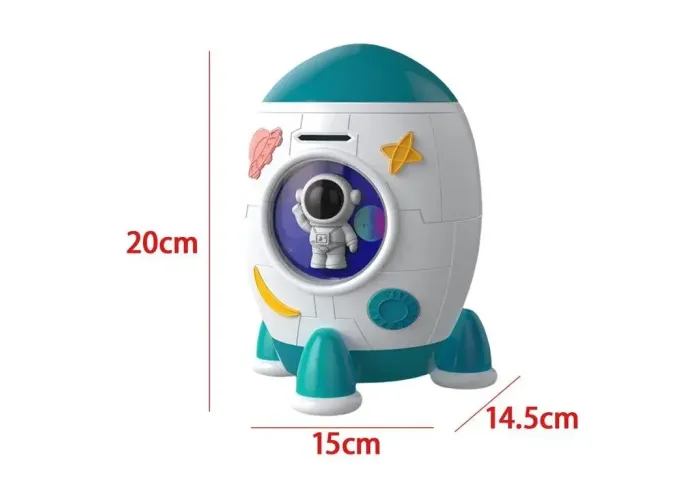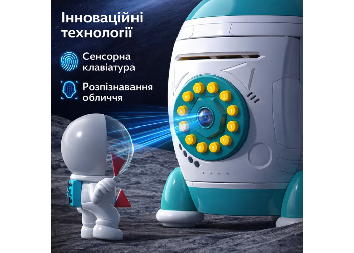 Електронна скарбничка-сейф 852A у формі космічної ракети стане чудовим помічником для зберігання заощадження вашої дитини! Цей мінісейф створений для юних дослідників всесвіту, об'єднуючи в собі оригінальний дизайн і безліч цікавих функцій.