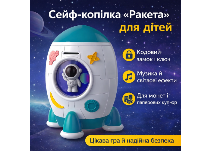 Сейф-копилка Ракета зі звуковими та світловими ефектами 852A Музична скарбничка з унікальним дизайном