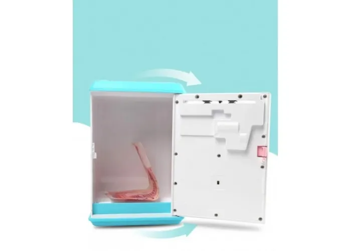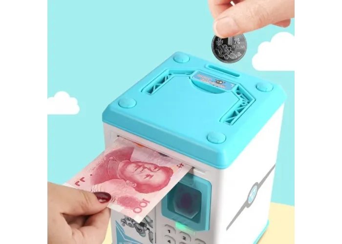 Ця скарбничка-сейф обладнана спеціальним механізмом, який спрацьовує під час піднесення купюри до купюрів приймача та затягує її всередину, поміщаючи в основне відділення скарбниці. У верхній частині є проріз для монет, які збираються в спеціальний лоток і не змішуються з купюрами.