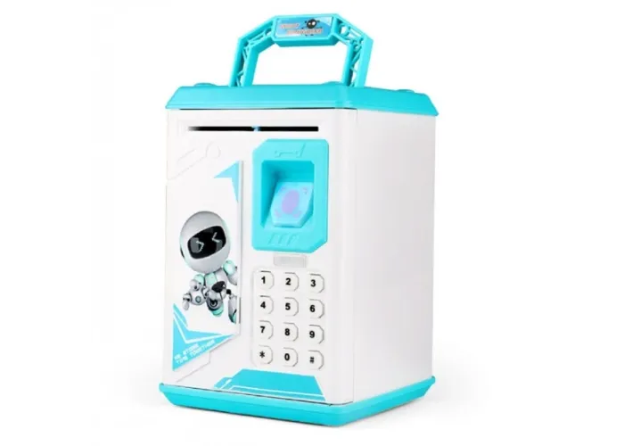 Як і належить справжньому сейфу, ця скарбничка має сканер відбитка пальця та кодовий замок. Відскануйте палець або введіть код, сейф відкриється. Якщо ж ви раптом забули закрити двері, скарбничка нагадає звуковим сповіщенням, що дверцята відчинені.