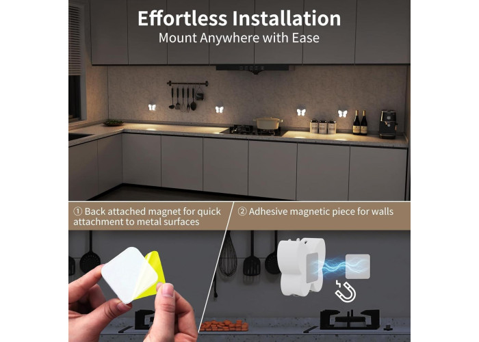 Способ монтажа: Максимально простий і швидкий, що не вимагає інструментів. Світильник кріпиться на будь-яку плоску поверхню за допомогою магніту або клейкої підкладки.