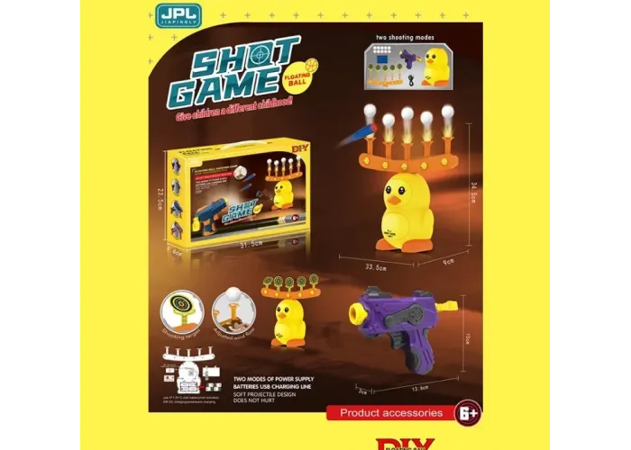 Щоб захопити дитину на кілька годин, можна подарувати їй повітряний тир Shot Game. Це дуже цікава іграшка, яка навчить дитину концентруватися на цілі, розвивати спритність, швидкість реакції, а також кмітливості. Така гра не залишить байдужою жодну дитину, адже мішені, як за чарівницею ширяють у повітрі, а їй необхідно забивати їх за допомогою невеликого пістолета.