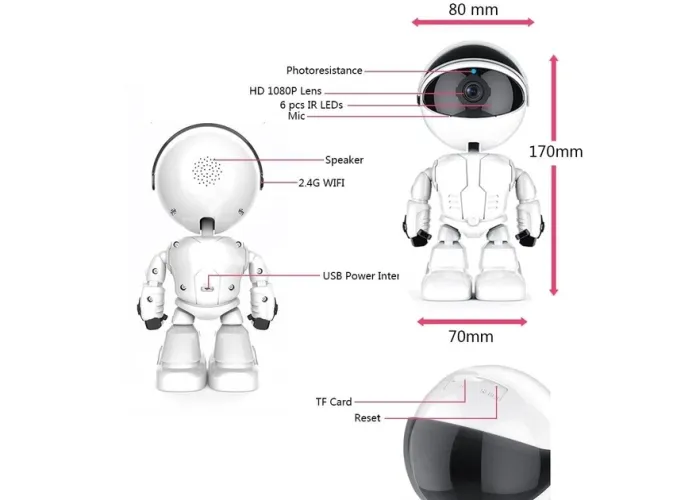 Ця відеоня (ip камера), попри невисоку ціну, вражає чудовою якістю зображення завдяки матриці Sony 2mp з роздільною здатністю 1920x1080. Виготовлена у формі дитячої іграшки й ідеально впишеться в інтер'єр дитячої кімнати. Має датчик звуку та датчик руху, під час спрацьовування яких сповіщає вас звуковим сигналом через застосунок, нічний режим (знімає навіть у повній темряві), поворотний механізм, що дає змогу обертати камеру до 320 градусів по горизонталі та до 60 по вертикалі, обладнана високочутливим мікрофоном і динаміком, які забезпечують двосторонній аудіозв'язок.