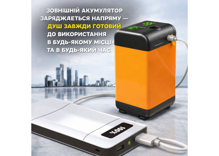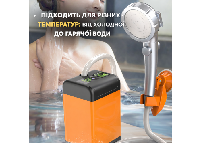 Портативний душ із насосом на 3,7 В — це зручне та практичне рішення для прихильників активного відпочинку, кемпінгу, поїздок на природу та дачі. Він легко кріпиться до стіни або встановлюється за допомогою присоска, не вимагає складного монтажу та готовий до використання буквально за лічені хвилини. Сучасний лаконічний дизайн і жовтогаряче забарвлення роблять пристрій помітним і стильним аксесуаром будь-де.