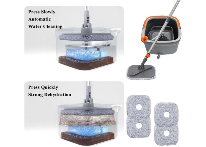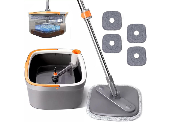 Ця швабра з самовіджимом ідеально підходить для прибирання будь-яких поверхонь, зокрема важкодоступних. Вона обладнана насадкою з мікрофібри, яка ефективно вбирає вологу та бруд, не залишаючи розводів. Відро з двома відсіками полегшує прибирання й запобігає поширенню бруду та бактерій. У першому відсіку розміщений водосгін із центрифужним віджимом, який дає змогу швидко та легко віджати насадку. У другому відсіку можна залити воду з мийним засобом.