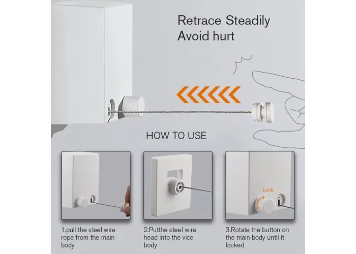 Якщо ви шукаєте компактну сушарку для білизни на балкон або у ванну — ви отримуєте універсальний пристрій, який можна розмістити практично скрізь. Висувна мотузка для білизни — це компактна сушарка для одягу з настінним кріпленням. Виріб із легкістю можна встановити у ванній, кухні, балконі або повісити на задньому дворику в саду.