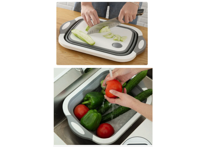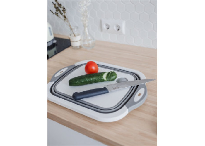 Дошка зі складаною мискою буде незамінною на пікніку або в туристичному поході, оскільки займе мало місця й дасть змогу гарненько промити продукти.