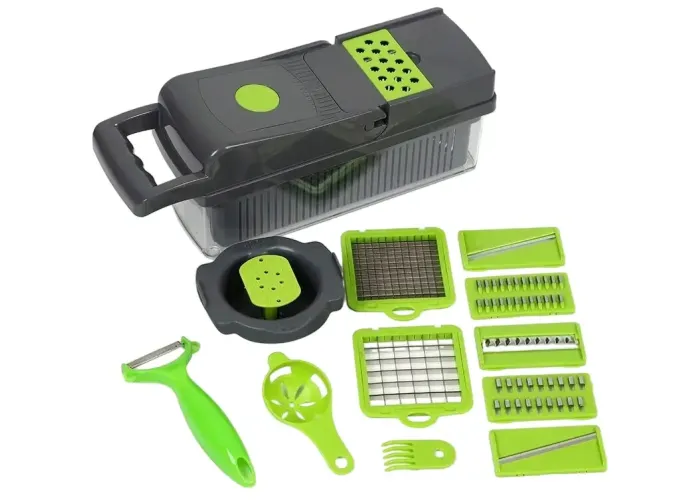 Багатофункційний слайсер для овочів Vegetable Salad Cutter — це ручний кухонний ніж 14-в-1, який слугує незамінним помічником для нарізання овочів, фруктів та інших продуктів. З його допомогою можна швидко та легко нарізати продукти кубиками, соломкою, скибочками, фаршем та іншими способами.
