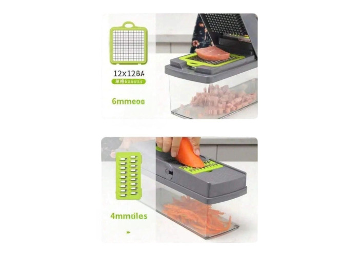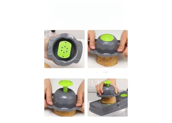 Багатофункціональність: 7 різних ножів для нарізування дають змогу створювати різноманітні форми та розміри нарізки — від тонких до товстих скибочок, кубиків або соломки.