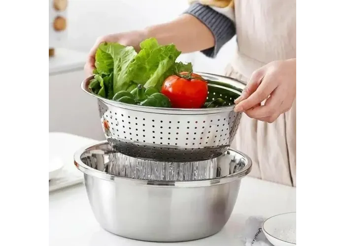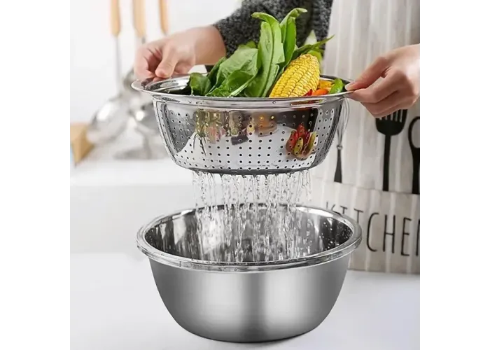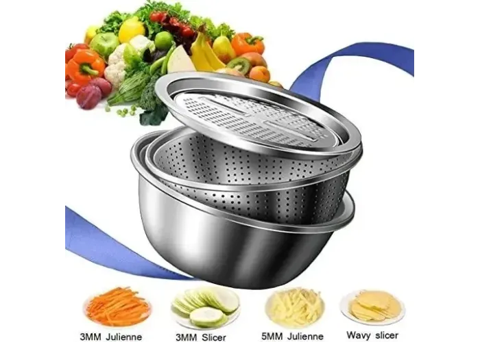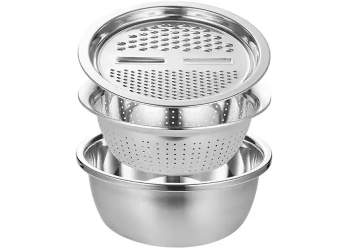 Багатофункціональний кухонний набір із неіржавкої сталі 3 в 1 Metal Basket Cutter Миска друшляк і тертка