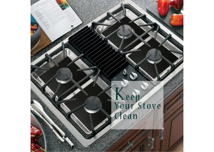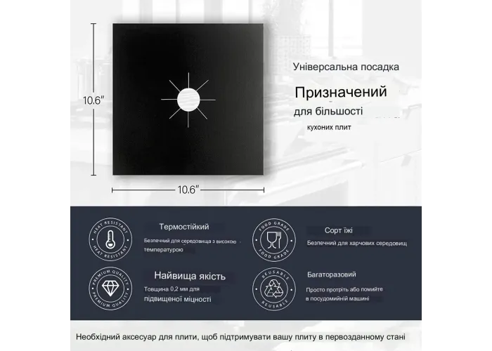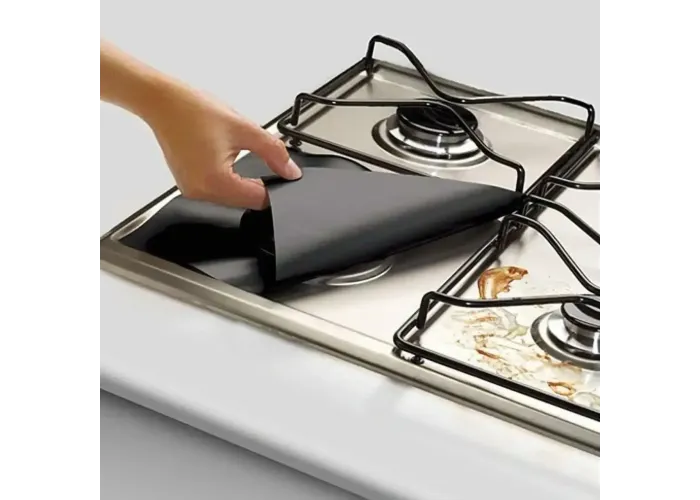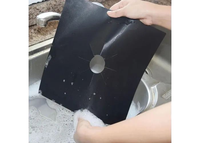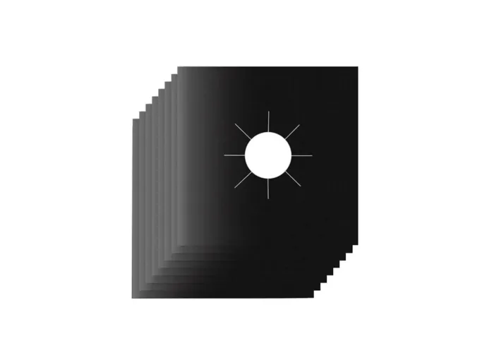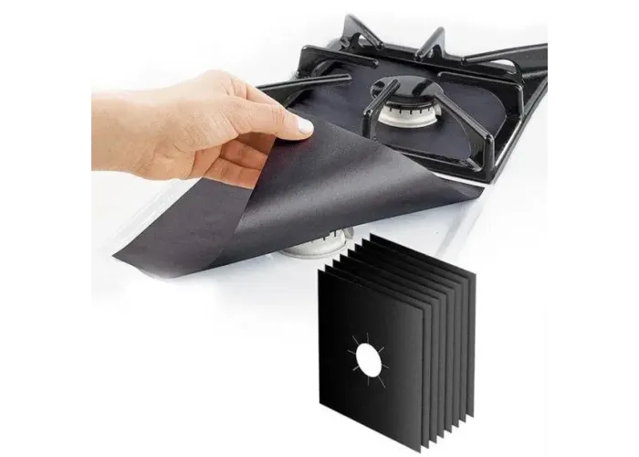 Пропонуємо до вашої уваги якісне та сучасне рішення, що увійшло на заміну одноразовим алюмінієвим накладкам. У кожній накладці в центрі вирізаний отвір із розширювальними радіальними просічками для зручного встановлення на плиті та адаптації під різні діаметри газових конфорок. Поверхня тефлонових накладок гладка з можливим плавним проходженням фактури основної тканини, стійка до високих температур і хімічного впливу. Тефлонові накладки для газових плит, мабуть, найраціональніше рішення для захисту газової плити або вбудованої варильної поверхні.
