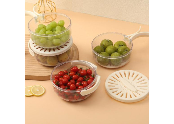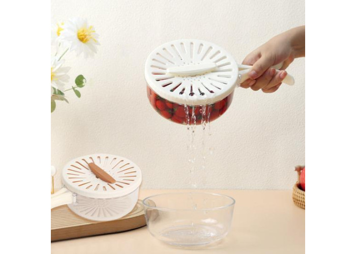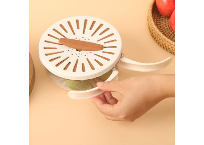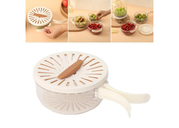 Завдяки продумано сконструйованій кришці з полицею сіткою й ручкою для легкого відкривання та закривання цей кошик для миття овочів робить миття та зціджування фруктів і овочів легким заняттям. вашій кухні.