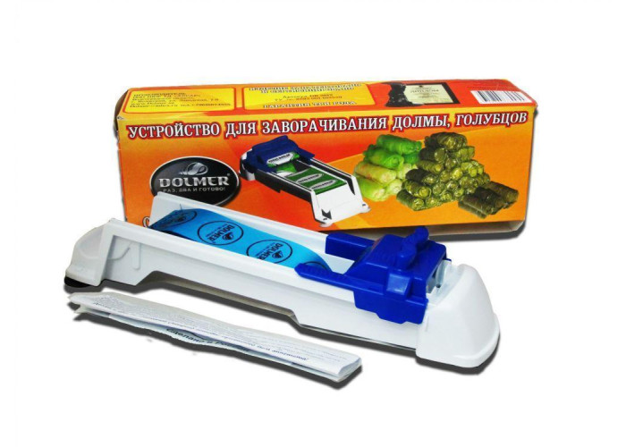 Машинка для приготування долми, голубців Долмер (Dolmer) Прекрасний пристрій, який призначений для загортання різних кулінарних виробів. Довмер не вимагає особливих навичок експлуатації та якихось знань, позаяк абсолютно безпечний і простий у застосуванні! Він підходить для використання як удома, так і в ресторанах. Це унікальний пристрій для загортання часточки та голубців, який робить процес приготування трудомістких страв швидким і легким, даючи змогу заощадити час готування вдвічі! Принцип роботи гранично простий — покладіть капусний або виноградний лист на прилад, а потім зверху накладіть м'ясний фарш і помістіть усе разом у спеціальне заглиблення. Плавно рухайте каретку в крайнє положення, щоб зробити напівфабрикат. Для отримання продукту великого діаметра встановіть регулювальну планку на позначку "L". Для середнього діаметра — планку на позначку "М". Планка "S" призначена для маленького розміру. Пам'ятайте, якщо листя свіже, молоді — їх спершу потрібно злегка прокип'ятити, а якщо солоне, то перед використанням промийте його в холодній воді трохи більш ніж 5 хвилин, а потім прокип'ятіть для додання їм еластичності. За допомогою Долмера також можна приготувати: рулети з шинки; рулети зі смажених баклажанів; рулети з лаваша; млинці з сиром; голубці з пекінської капусти. Виробник залишає за собою право змінювати зовнішній вигляд, комплектацію, найменування та спосіб пакування цього товару.