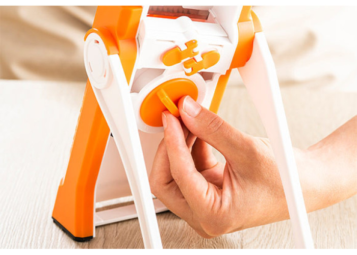 Слайсер для овочів Delimano Brava — це неповторний прилад, оскільки він має абсолютно новий механізм: спускову конструкцію на пружині, яка дає йому змогу працювати в напівавтоматичному режимі, щоб ви докладали менше зусиль. Слайсер також має абсолютно унікальний дизайн, і найголовніше: він на 100% убезпечить вас від порізів!