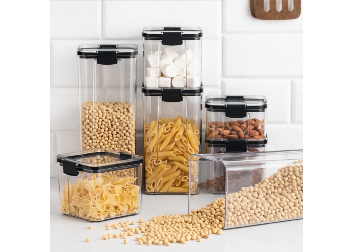 Набір контейнерів Food Storage Container із 6 штук — це зручне та практичне рішення для зберігання сипких продуктів на кухні. Контейнери допомагають підтримувати лад, зберігають свіжість продуктів і економлять простір у шафах і на полицях.