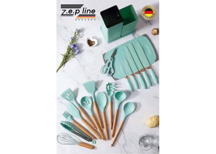 Набір кухонного приладдя + набір ножів Zepline ZP-107 19 предметів Бірюзовий