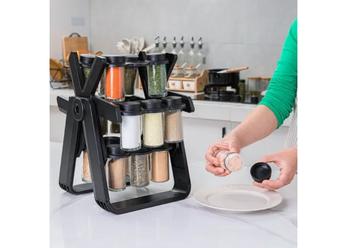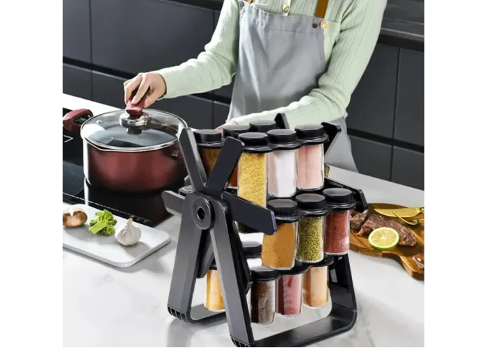 Обертова полиця для спецій, органайзер, колесо огляду на 360 градусів, набір із 18 скляних банок, органайзер для приправ