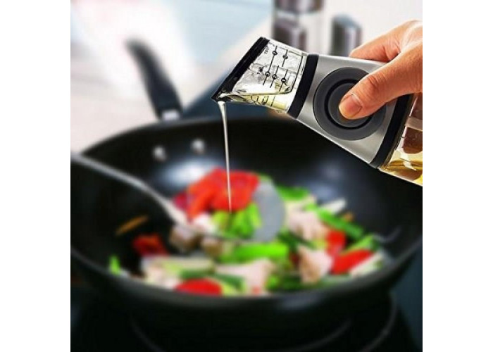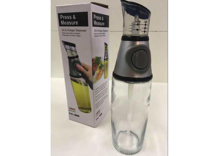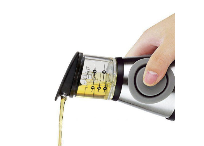 Просто натисніть кнопку на обох сторонах шиї й олійних або оцтових насосах у вимірювальний контейнер для зручної порції.
