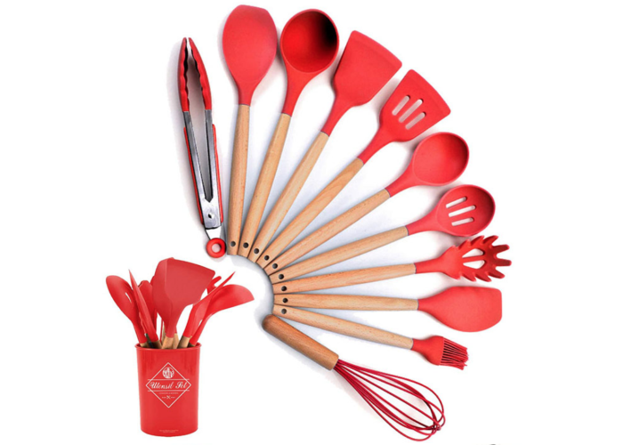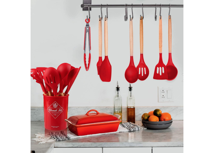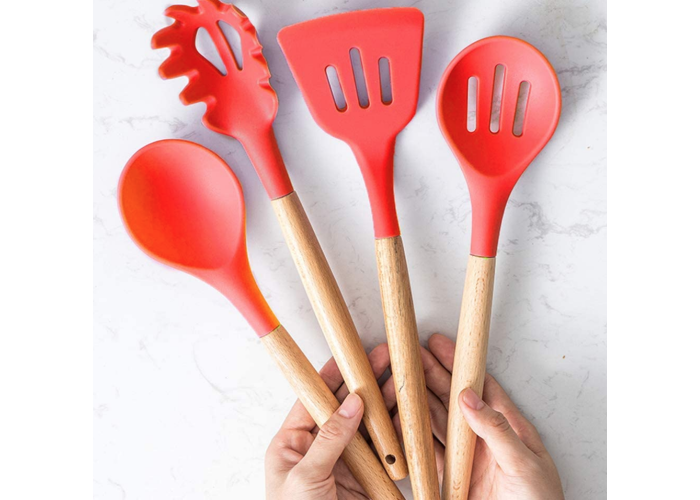 Кожен аксесуар зроблений із міцного та гладкого високоякісного дуба з антибактеріальними властивостями, використовувати які безпечно та комфортно та надтермостійкого нетоксичного силікону преміумкласу, який захищає Ваш посуд від подряпин. На дні відерця для приладдя є отвір, який забезпечує сухість усіх аксесуарів, а також запобігає утворенню слизу та цвілі.