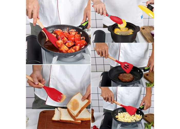 Він виготовлений із харчового, термостійкого, антипригарного силікону та добре відполірованого натурального дерева. Безпечний для використання з харчовими продуктами, нетоксичний, без запахів, витримує температуру до 230 °C.