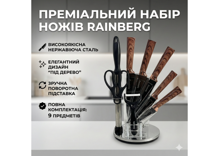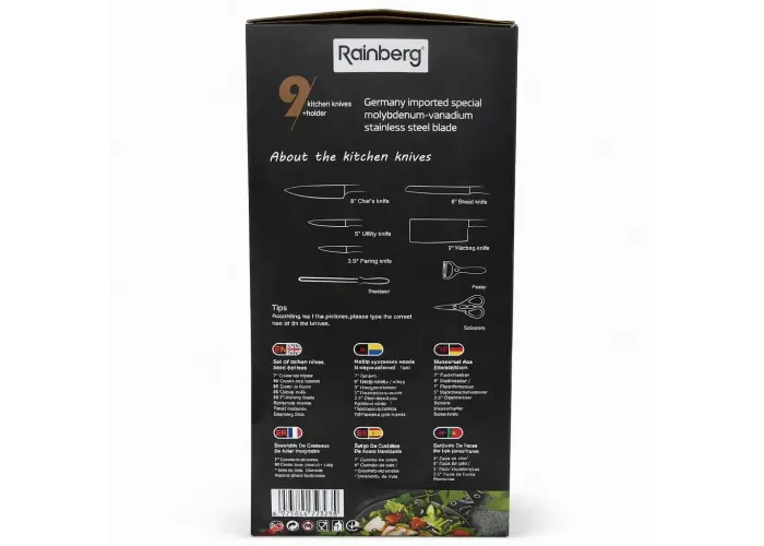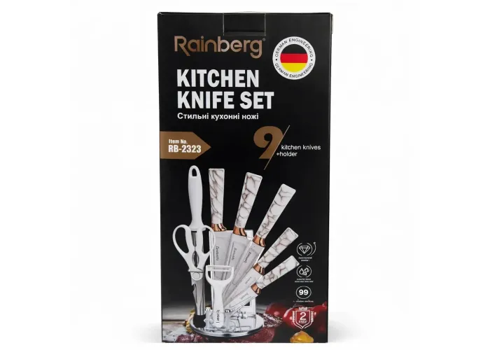 Набір кухонних ножів Rainberg RB-2323 — це практичне рішення для щоденного приготування страв на домашній кухні. Леза виготовлені з неіржавкої сталі, що забезпечує тривалу гостроту, укороченість до корозії та легке очищення після використання.
