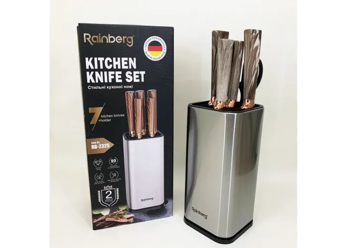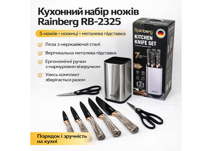 Набір кухонних ножів Rainberg RB-2325 — це повноцінний комплект для домашньої кухні, призначений для щоденного використання і закриває основні завдання під час приготування їжі.