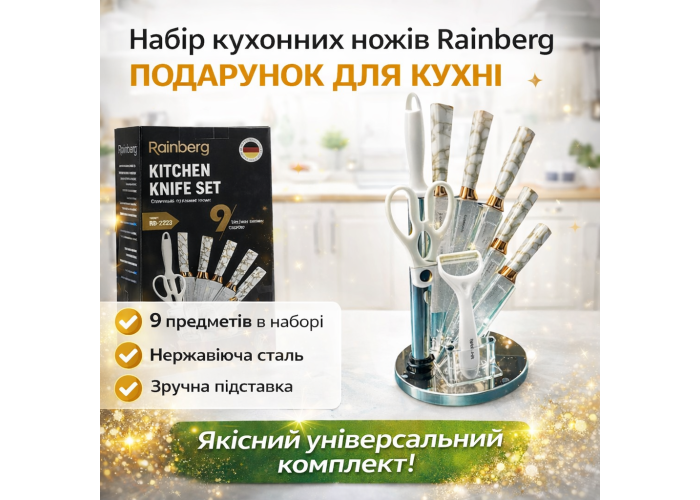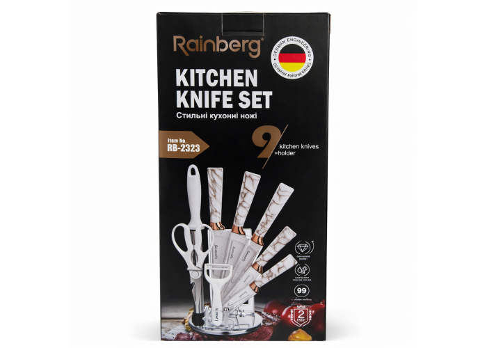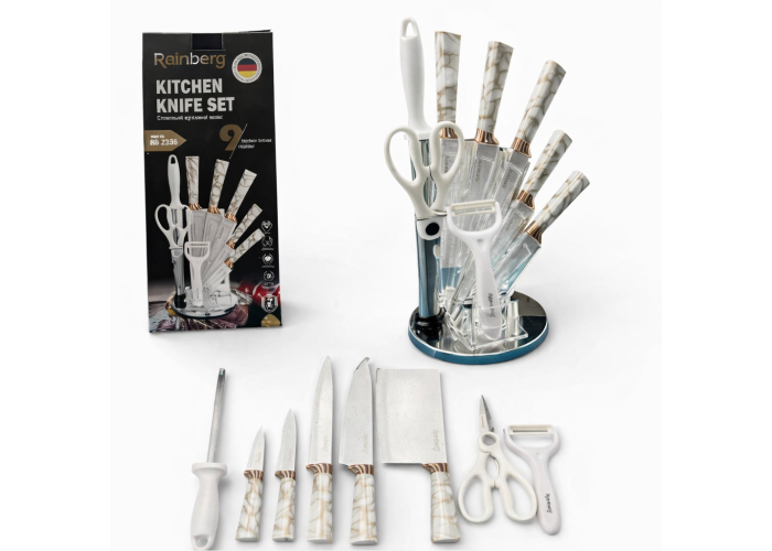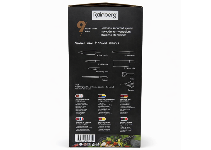 Набір кухонних ножів Rainberg RB-2323 — це практичне рішення для щоденного приготування страв на домашній кухні. Леза виготовлені з нержавіючої сталі, що забезпечує тривалу гостроту, стійкість до корозії та легке очищення після використання.