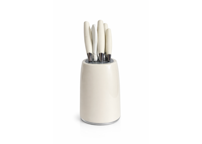 Компактна підставка надійно фіксує кожен інструмент, заощаджує місце та робить зберігання максимально безпечним. Набір чудово підійде як для щоденного використання, так і як подарунок для нової кухні.