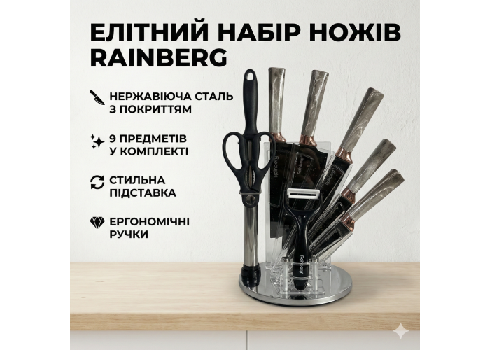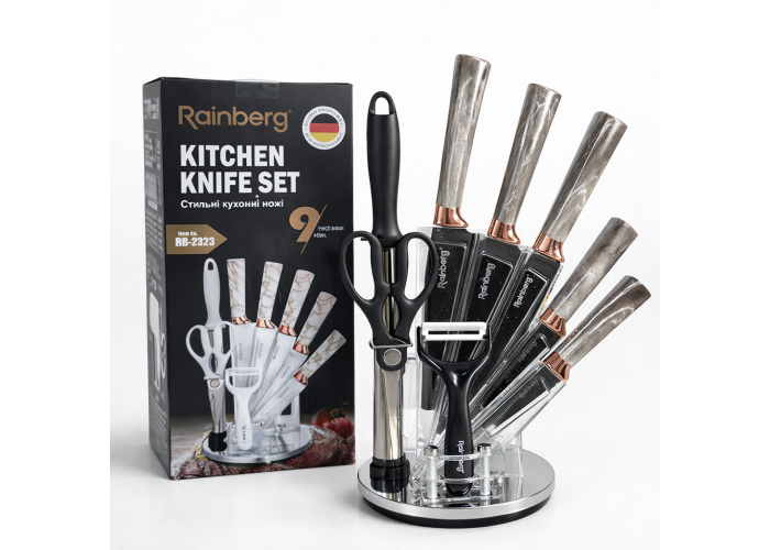 Набір кухонних ножів Rainberg RB-2323 — це практичне рішення для щоденного приготування страв на домашній кухні. Леза виготовлені з неіржавкої сталі, що забезпечує тривалу гостроту, стійкість до корозії та легке очищення після використання.