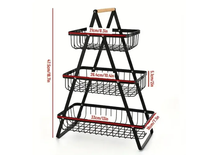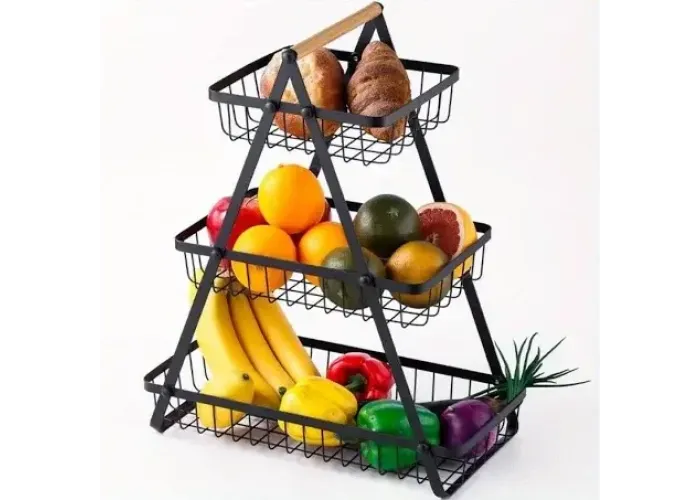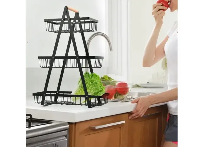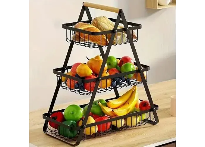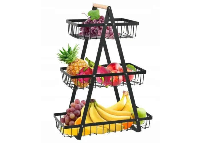 Організуйте зберігання фруктів та овочів за допомогою стильної фруктовиці з металу. Триярусна конструкція забезпечує оптимальне використання простору та дає змогу розділити різні типи продуктів для збереження їхньої свіжості.