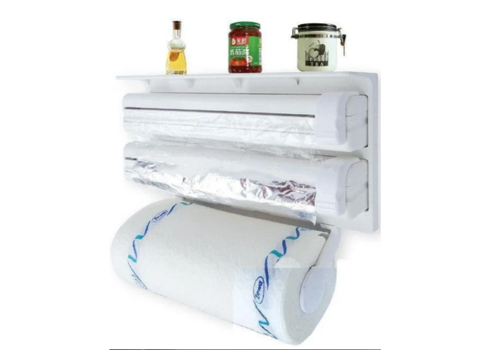 Кухонний диспенсер Kitchen Roll Triple Paper Dispenser зручний тим, що рулони з фольгою, харчовою плівкою і рушниками знаходяться в одному доступному місці і Вам не доведеться витрачати час на їх пошуки в надрах кухонних шафок!