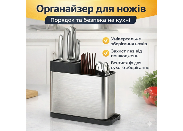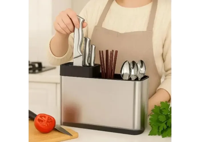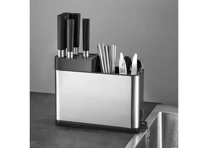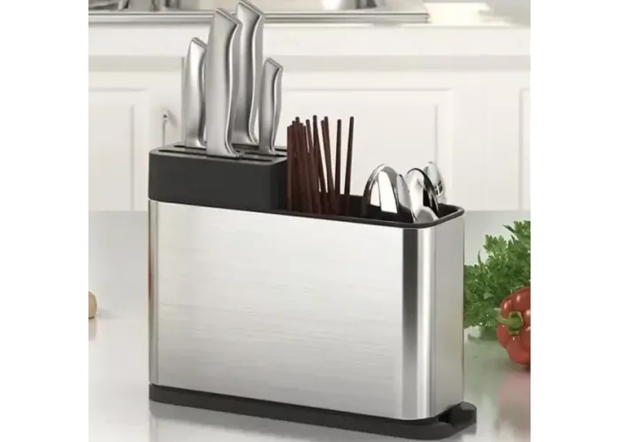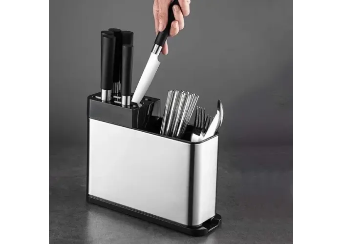 Підставка-органайзер для ножів AND1588 призначена для безпечного та зручного зберігання кухонних ножів і ножиць. Виріб використовується на кухні як настільний органайзер і дає змогу підтримувати лад, забезпечуючи швидкий доступ до інструментів під час приготування їжі. Компактна форма та нейтральний дизайн підходять для більшості кухонних інтер'єрів.
