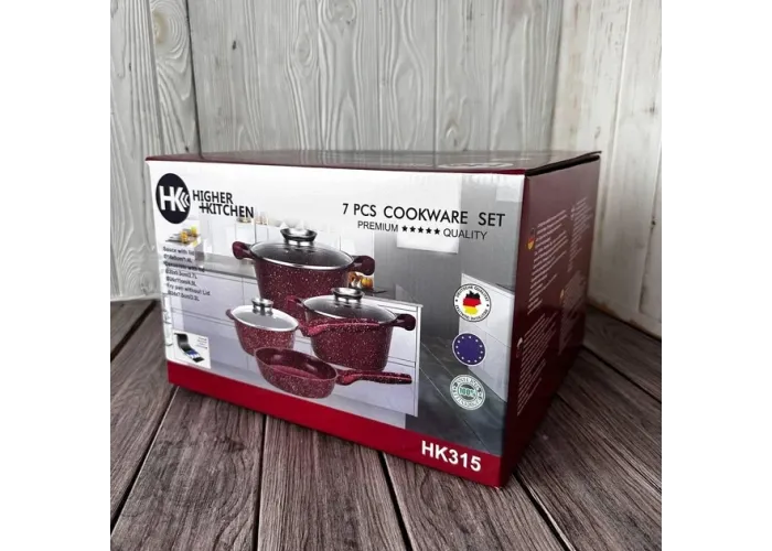 Набір кухонного посуду Higher Kitchen HK-315 — це посуд з екологічно чистого матеріалу литого алюмінію, що має високу теплопровідність, гігієнічність і довговічність.