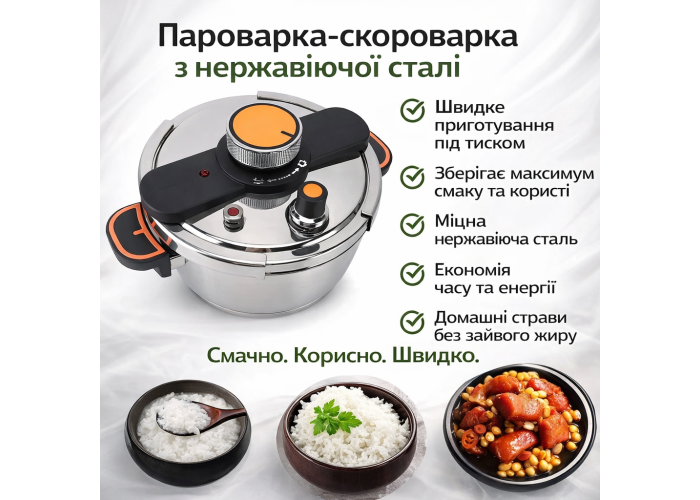 Висока швидкість: скорочує час приготування м'яса, бобових та овочів до мінімуму.