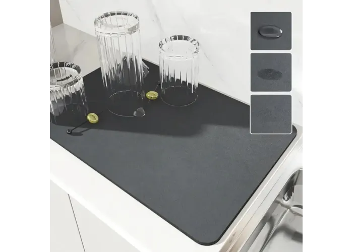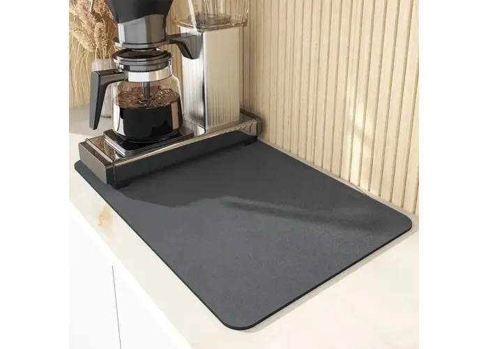 Універсальний килимок на кухню — це зручний і практичний аксесуар, який миттєво вбирає бризки та розлиту рідину, залишаючи робочі поверхні сухими та чистими. Він призначений для сушіння посуду та ванного приладдя, а також чудовий варіант як підставка під кавоварку.