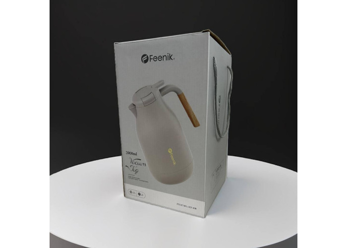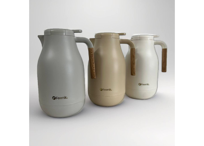 Термос-глечик Feenik зі скляною колбою поєднує в собі ефективну термоізоляцію, довговічність, зручність використання й універсальність, роблячи його чудовим вибором для комфортного зберігання й подавання напоїв.