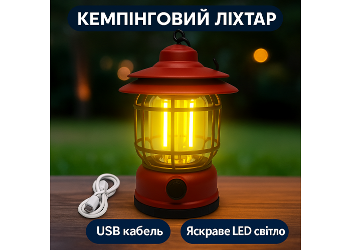Акумуляторний кемпінговий ліхтар Camping Lamp 27S — компактний і яскравий світильник для дому, дачі, намети та будь-яких виїздів на природу. Ретро-дизайн, тепле комфортне світіння й освітлення на 360° роблять його зручною заміною звичайної лампи під час вимкнення світла та ідеальним супутником у походах.