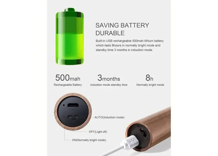 Лампа має низьку потужність, що забезпечує тривалий час роботи. Є два режими роботи: постійне освітлення та спрацьовування від датчика руху активується тільки в темряві.