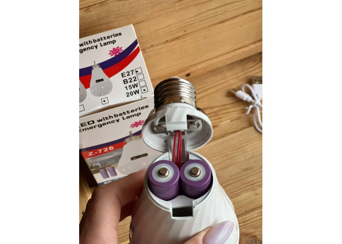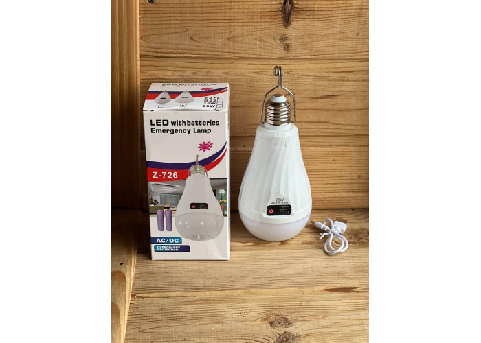 Лампочка з акумулятором 2 x 18650 моделі Z-726 являє собою інноваційне рішення для освітлення, яке може бути використане у випадках частих вимкнень електроенергії.