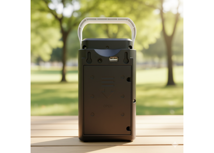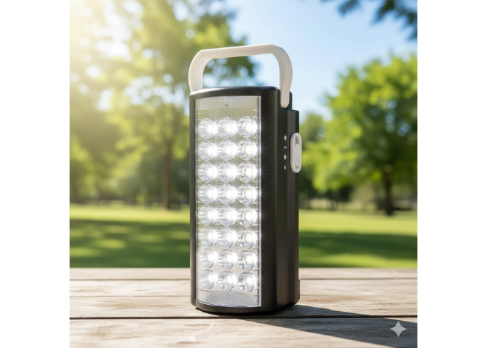 Зверху є ручка для перенесення ліхтаря та отвори для можливості кріплення на стіну. Над яскраві 24 SMD LED світлодіодного ліхтаря дають дуже яскраве світло, а приємним бонусом є наявність роз'єму USB для заряджання смартфона.