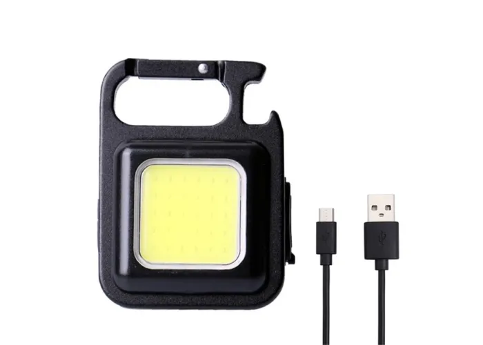 Ліхтарик брелок акумуляторний LED COB з карабіном і магнітом 500 mAh — потужне та портативне джерело світла, що не займає багато місця. Завдяки карабіну його можна носити у зв'язці з ключами або причепити до рюкзака. Вбудований у корпус неодимовий магніт дасть змогу прикріпити його на будь-яку магнітну маталітичну поверхню.
