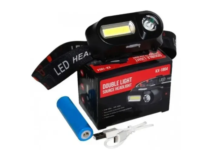 Ліхтар налобний COB XPE поєднує в одному корпусі два незалежні одна від одної ліхтарики. У кожного своя кнопка керування та вмикання/вимикання, перемикання режимів здійснюється окремою кнопкою для кожного з ліхтариків.