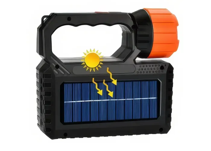 Ручний акумуляторний світлодіодний ліхтар із сонячною батареєю функцією PowerBank і 3 лампочками OK-718S-B