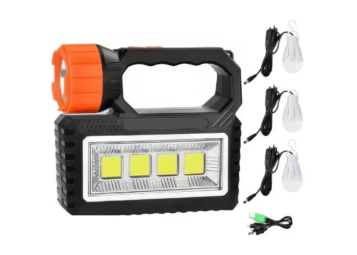 Модель обладнана трьома лампочками, що забезпечують яскраве та рівномірне світло, а також бічною лампою з потужними світлодіодами COB. Ліхтар можна використовувати як джерело енергії для заряджання мобільних пристроїв завдяки вбудованому акумулятору та USB-кабелю з універсальними виходами.