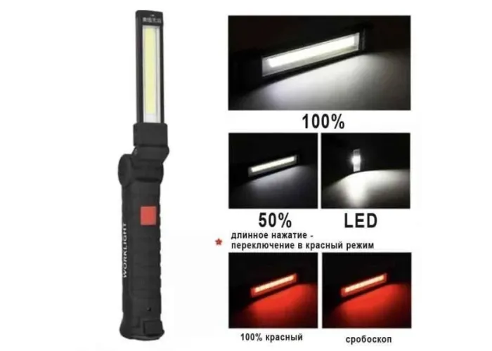 Ліхтар для кемпінгу W-52-SMD+COB — це універсальний ручний ліхтарик із поворотним СІВ світлодіодом із білим і червоним світлом, плюс додатково на торці встановлений SMD діод.
