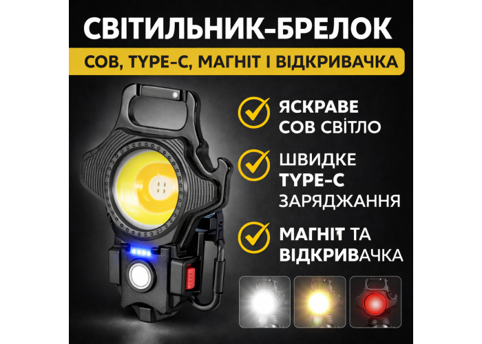 Кемпінговий світильник-брелок W5133 — це компактний багатофункціональний LED-ліхтар, призначений для освітлення на природі, риболовлі, у походах, під час ремонту та в побуті. Обладнаний потужним COB-світлодіодом, декількома режимами світіння і вбудованим акумулятором, який заряджається через сучасний порт Type-C. Магнітна основа забезпечує надійне кріплення до металевих поверхонь, а карабін дає змогу легко фіксувати пристрій на рюкзаку, поясі або ключах. Додаткова вбудована відкривачка робить світильник практичним помічником у будь-якій ситуації.