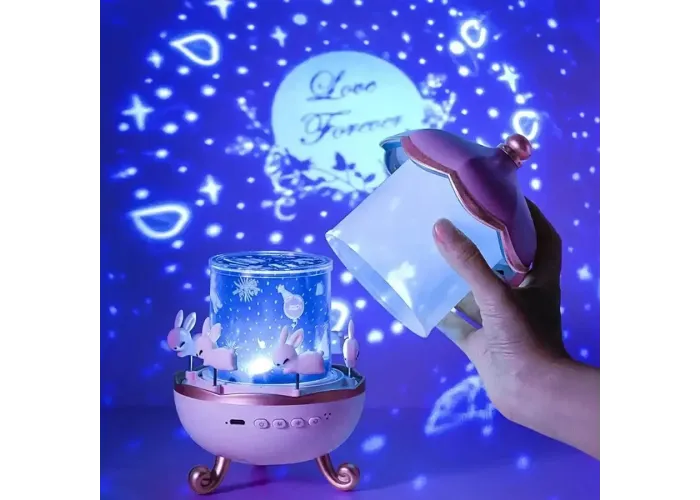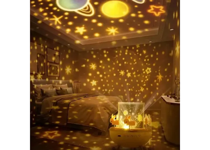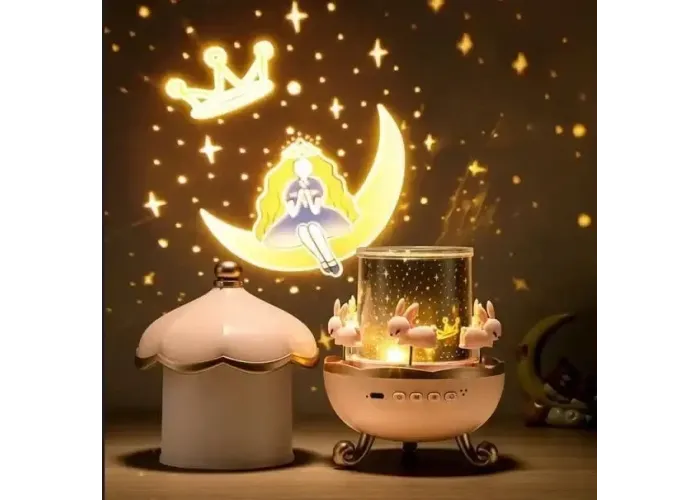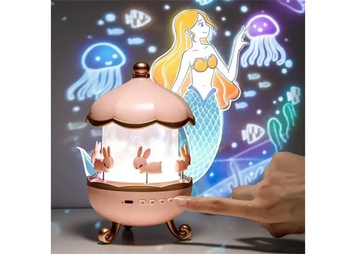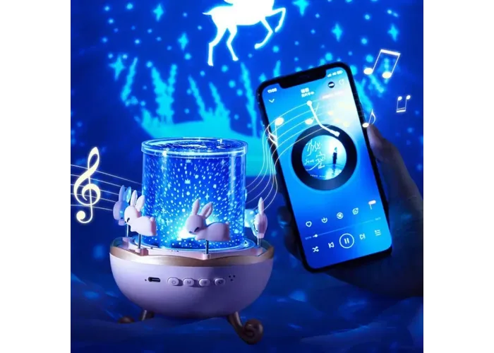 Вбудована Bluetooth-колонка дає змогу відтворювати улюблену музику або казки, забезпечуючи якісний звук. У разі закритого ковпака пристрій працює як нічник із м'яким світлом, а під час зняття ковпака — як проєктор, проєктуючи зображення на стіни та стелю. Також доступна функція обертання для більш живого та заворожливого ефекту.