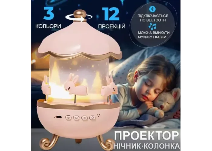 Музичний нічник-проєктор з Bluetooth Карусель зайчиків WH-E11-02 Дитячий музичний нічник